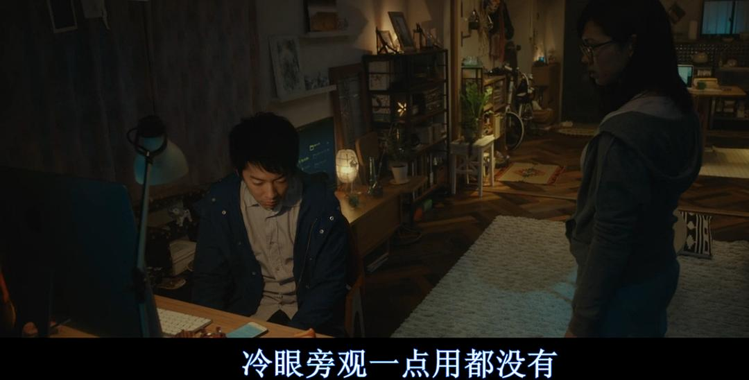 但是我现在也已经像银次一样,在行动了,虽然觉得自己写不出很牛逼的剧本,可是我还是在写,写了几十个微电影剧本,好几个网剧、网大剧本,虽然没有人拍,但起码也在努力,可以用数量安慰自己,相信写的多了就好了,虽然可能到最后也写不好,但还是会坚持下去。nn影片后来反转,看似内向沉稳的拓人,内心极度黑暗,觉得所有人都不行,其实根本是他自己不行。当然了,一直被人否定,从来没有被人肯定过,内心慢慢变得黑暗也是理所当然的。我之前有段时间,三个月都找不到工作,当时心里也极度抓狂,何况拓人两年都找不到工作。而理香呢?说不定一开始她真的和拓人不一样,没他那么黑暗,但是到后来连续两年没找到工作,都要撑不下去崩溃了,内心也变得扭曲,像拓人一样了。
