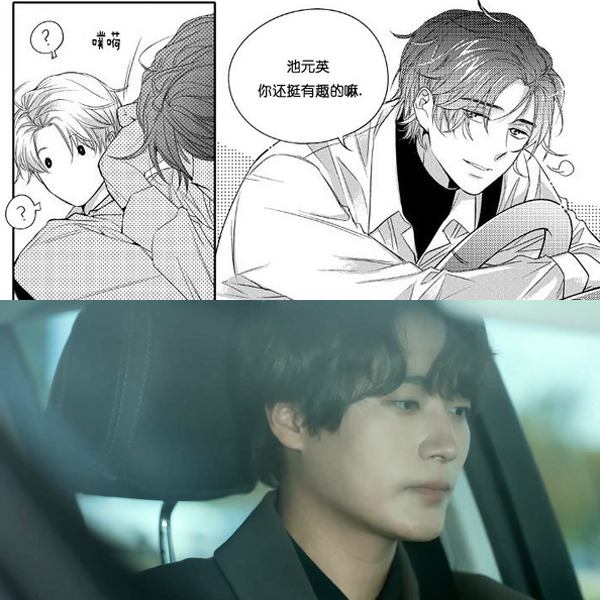这一通加减法下来,最大作用是修正耽美文本中常见的“既要又要”导致有悖常理、不合逻辑的悬浮人设,让承载不切实际幻想的角色先回归人间。举个例子,泰俊第一次对元英示好开车载他回市场那场戏,漫画第4话在元英“直男也会心动”的玩笑及随后关于恐同的解释后,给了泰俊全篇第一个霸总式的“邪魅一笑”,并调侃元英“挺有趣的”。而剧本在第2集删掉了这一幕泰俊的笑容和台词,表情也换成更克制的深沉,这是一个曾深受异性恋前男友情伤的同性恋者,听到任何直男拿性取向开玩笑应该都很难笑出来,哪怕听到对方说对自己心动。这场戏连眼神戏都是间接的,全程泰俊只用开车时偶尔的眼角余光扫向元英来展现人物内心的不安和不确定。这个改动不算大,但两种不同的反应为漫画和剧版早早奠定了相反的角色基调。