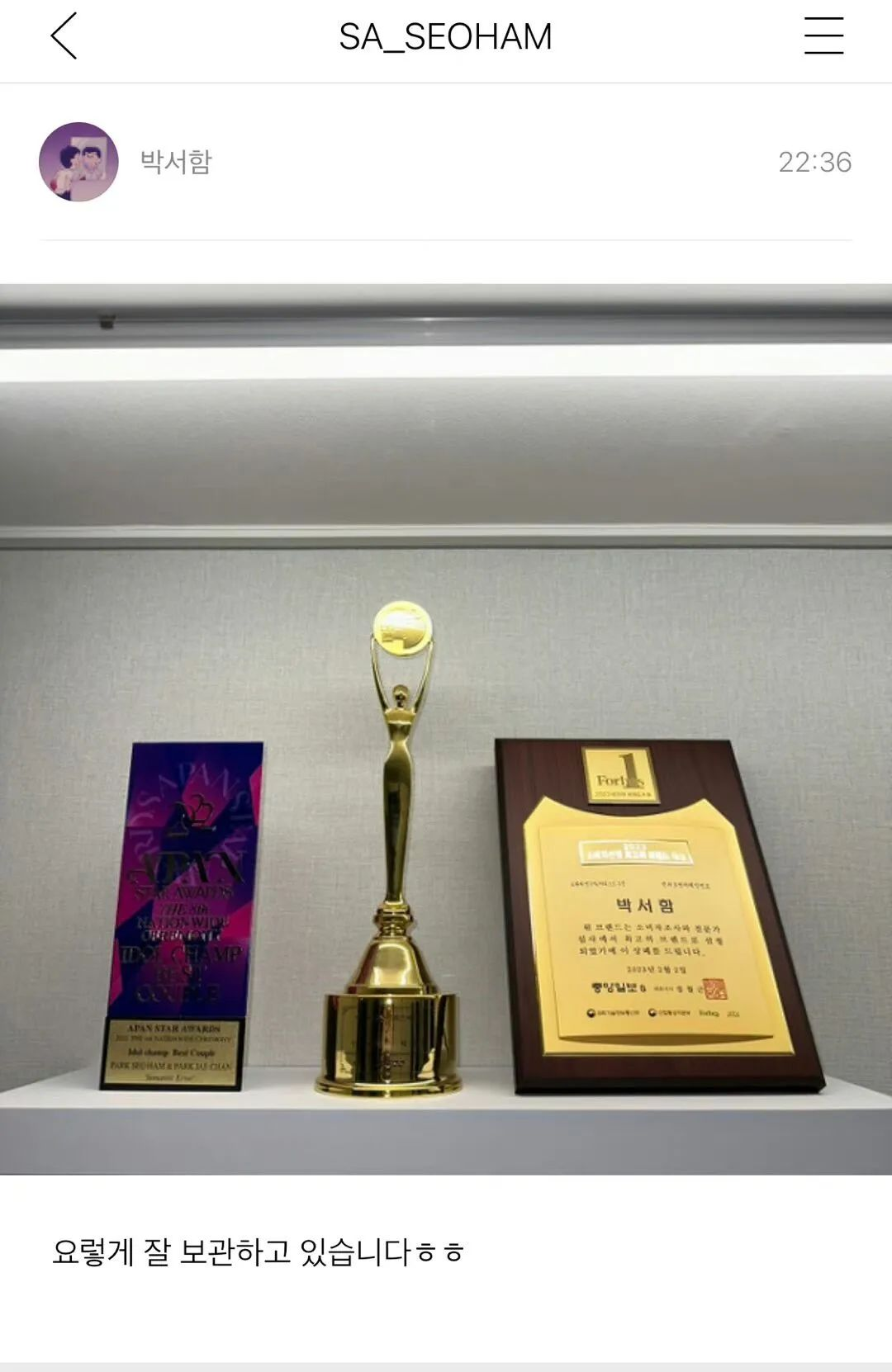 结果就是两位演员先后拿奖,男主朴栖含人在入伍不能公开露面,但是奖杯是一座一座往家送。男主朴宰灿人是十八线糊团的rapper,但是剧播后凭一己之力带团起飞,拿下首个一位。