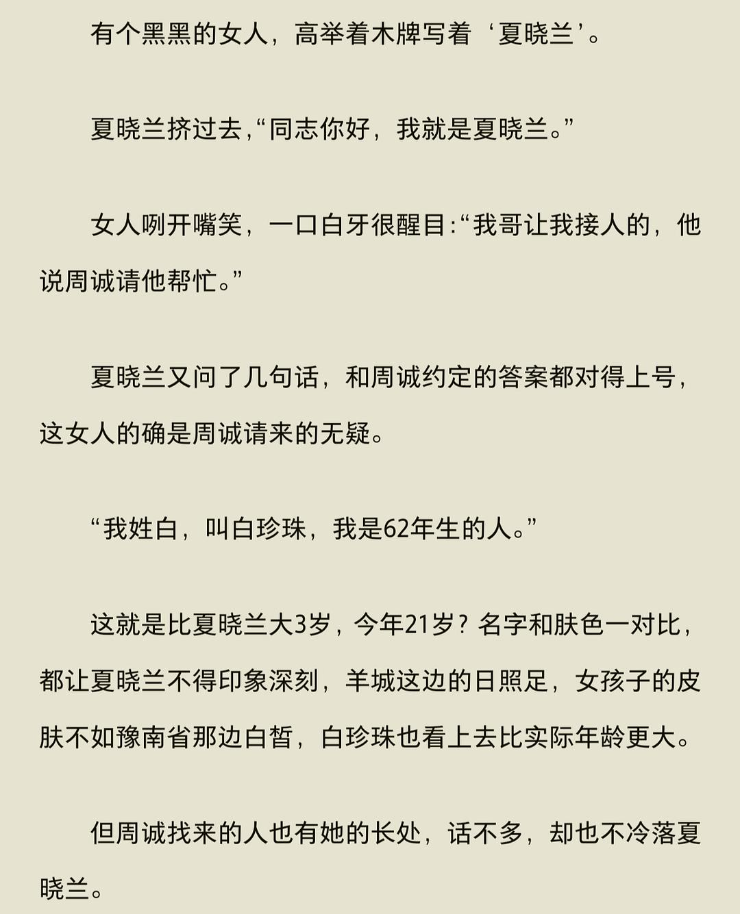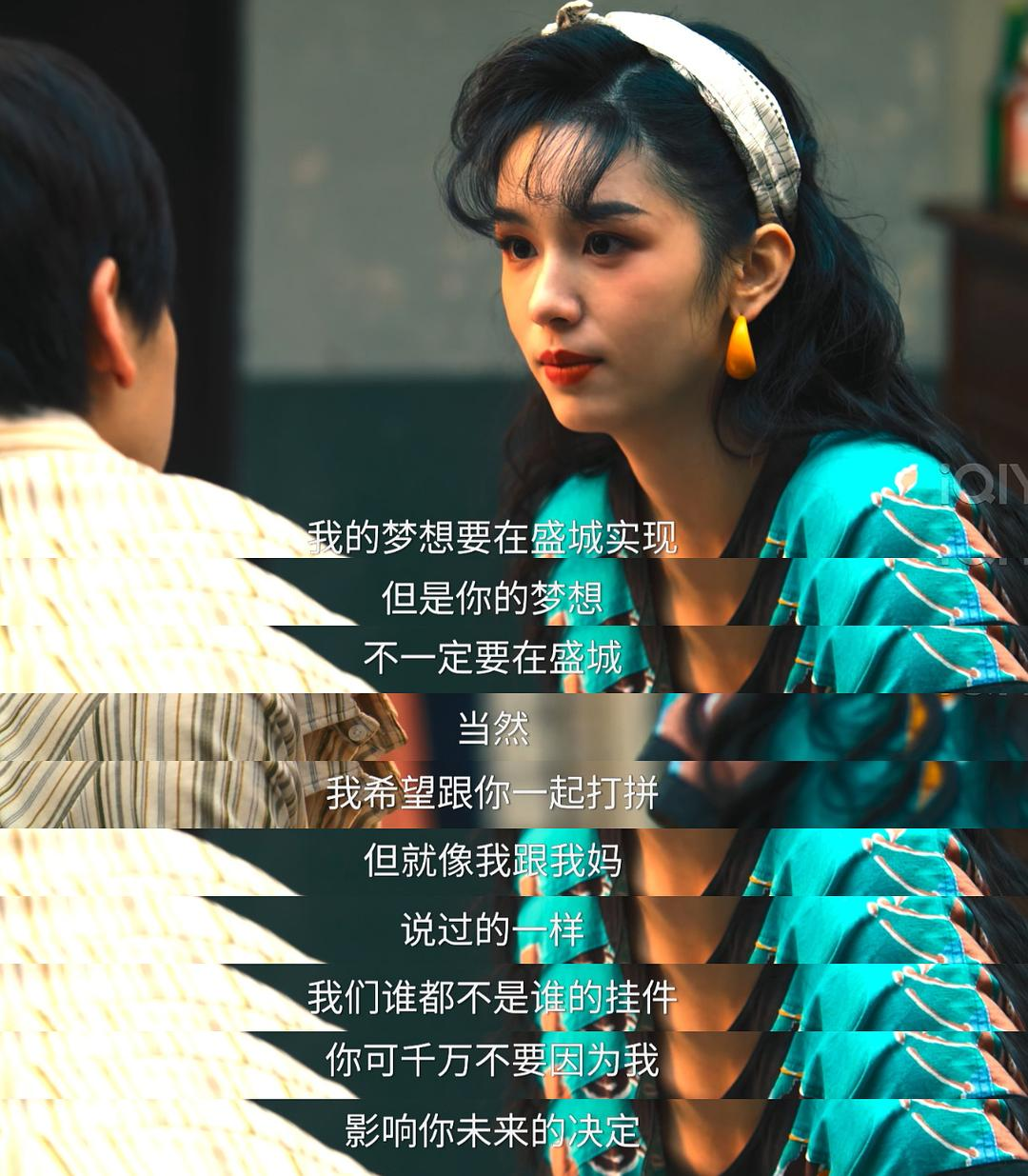 1983年,女主开了介绍信,坐着绿皮火车到了蓉城。下火车就遇到了混混,幸得卖水果的白珍珠路见不平,救下了她。等到女主买好了衣服,去感谢白珍珠,一番交谈之后,只见抽出一个塑料袋,一抖,给女主装了一兜龙眼。然后,女主弯腰,从放在地上的麂皮的袋子里拿出一件塑料袋装得严严实实的衣服递给白珍珠……莫名觉得很出戏。