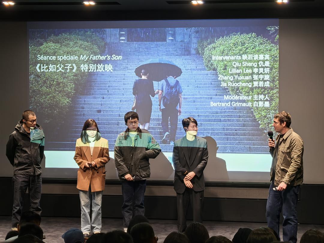 仇晟:嗯,我觉得在法国还是激起了不少有趣的讨论的,就比如我记得在法国首映现场有一位法国老人他提问说,你拍这部电影,是想证明中国教育的失败吗?然后我说嗯,当然部分是这样。但是当这个儿子他重新用他父亲的教育去教育AI的时候,他可能自己也会觉得这里面有这个荒诞性在里面,这是其一。当然我们后来又有一位法国的小女孩儿,也就是跟我说说父与子这个关系没有被充分的讨论,所以她很喜欢这部片,她觉得能够看到这里头的一些很粗暴的东西和一些温柔的东西,对于她来说是很有启发。