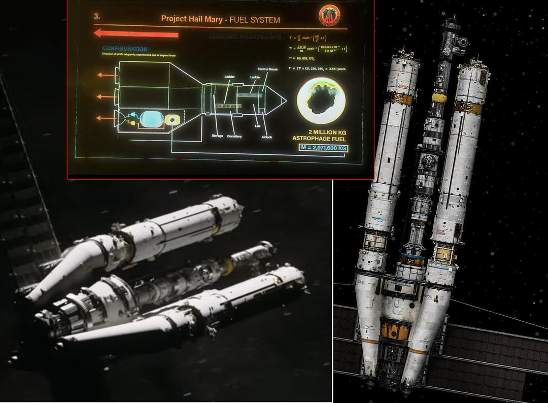 电影中表现出来的“挽救之星”(Hail Mary)号飞船形态,与书中插图相差巨大。不过,可以解释为书中插图只是飞船的早期概念图,实际设计有所变化也可以理解。