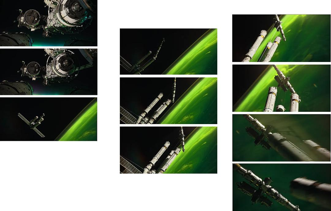 注意电影版飞船生活/科研区是象枪的瞄准镜一样,加挂在中间船体的外面的。这样,在离心模式下,中段船体拉出去之后,生活/科研区会再次旋转90度,保持这个部分的离心重力方向与推进时的重力方向一致。这个处理复杂多了,但科学上合理,视觉效果炫酷。