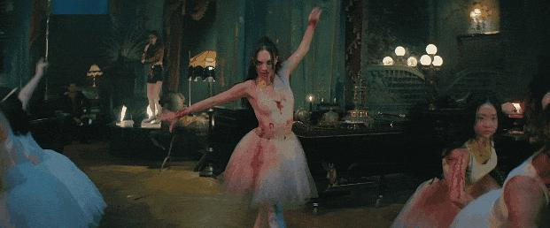 五个女孩,穿着被血浸染的芭蕾舞裙。