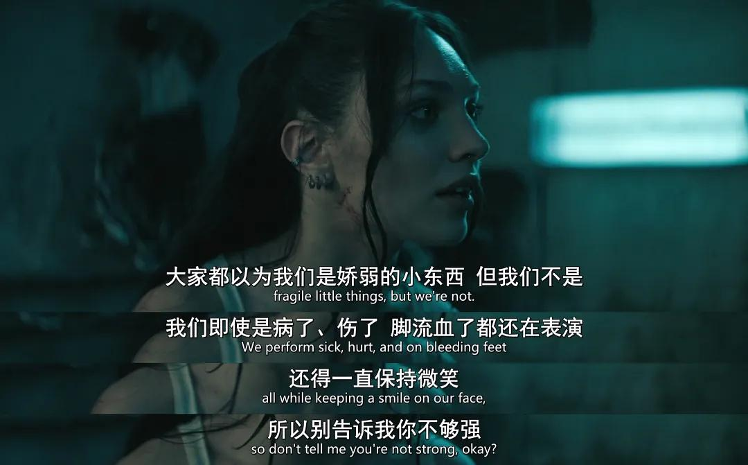 它似乎想触及多个方向,比如舞者的处境、个体在极端环境下的反应,甚至带有一丝女性视角的意味。