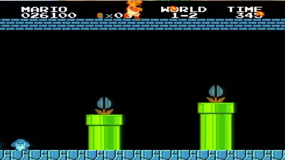 为了探究“传送门星系”的内部运作机制,碧琪公主和奇诺比奥跟随乌奇奇进入了一条较为昏暗的走廊,墙边标有“1-2关卡”。在NES上的初代《超级马里奥兄弟》游戏中,1-2关卡也同样比较昏暗。此外,电影中这段场景的配乐也与游戏中的相同。