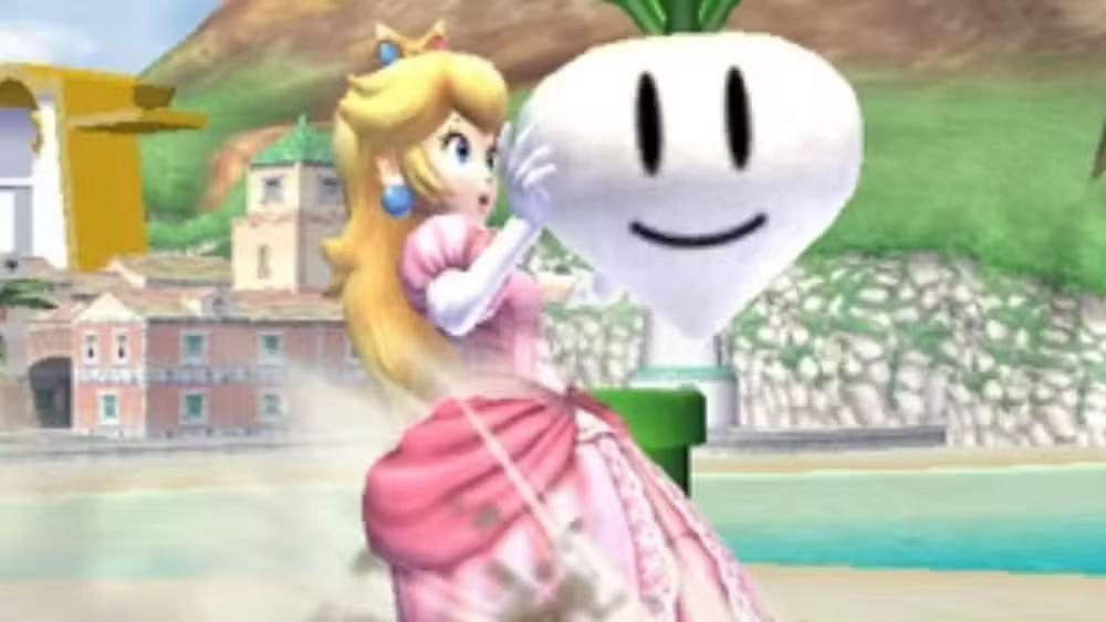 在赌场与忍者大军的战斗中,碧琪公主一度用萝卜发动攻击,这让人想起她在《任天堂明星大乱斗》系列中的经典招式。此外,她还使出了标志性的侧向攻击之一——碧琪炸弹。