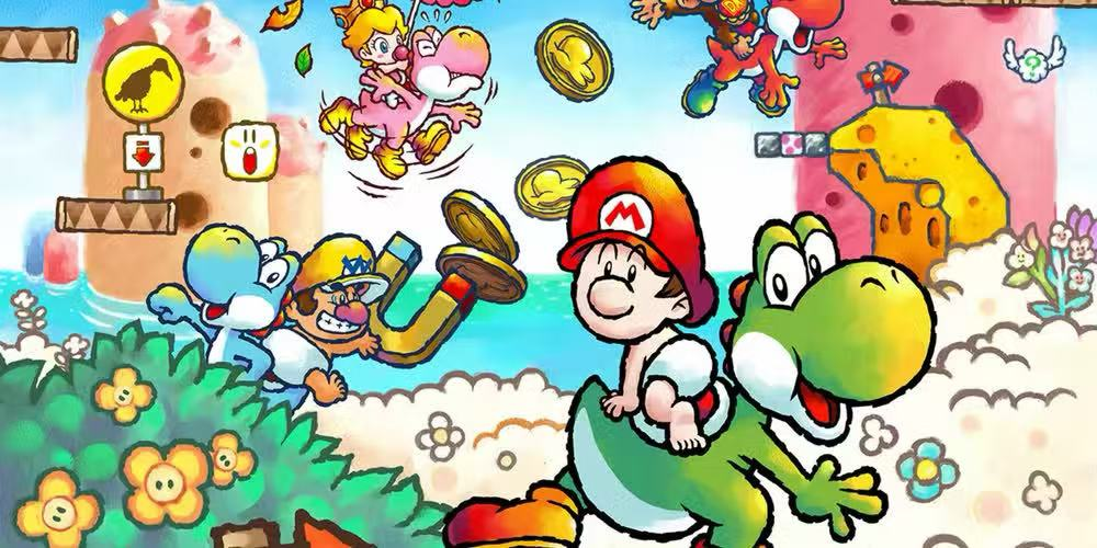 耀西背着马里奥宝宝们逃离霸王龙的追击,这是对经典游戏《耀西岛》的直接致敬。