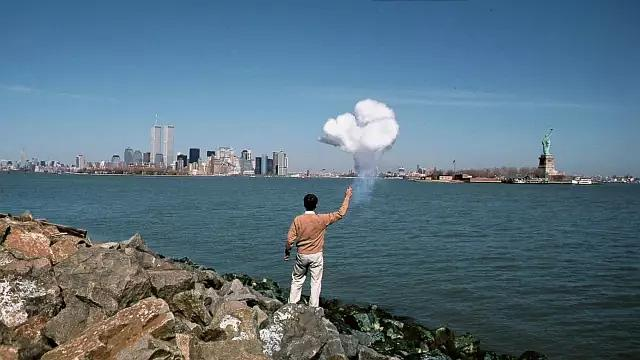 “我就想最好给它来一个原子弹,来一个蘑菇云。蘑菇云也算20世纪美国创造的一个经典符号,所以我就到内华达原子弹基地去给它放一个小小的蘑菇云,这个是一个空间的意义;另一个时间的意义是,这是对20世纪一个经典符号的一个嘲笑,或者是反思。”