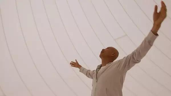看完整部影片再回想正片开始的第一段情节,越思忖越觉得耐人寻味。它或许匠心独运,或许妙手偶得,这就是纪录片的魅力。这段情节是,蔡国强来到浏阳,跟一位花炮厂经理在楼顶讨论“天梯”的构造,俩人之间,蓦地出现了一个巨大的“道”字。这可不是个简单的字眼,最基本的,它有道路的意思;在艺术上,有道器之辩;在人生论、宇宙论层面也有其复杂的内涵。相应的,《天梯》不仅回顾了蔡国强的人生道路,也讲述了他追求艺术之道乃至宇宙之道的故事。随后的画面,“道”变成了“家足道”,让人想到《易经》之“家道”。