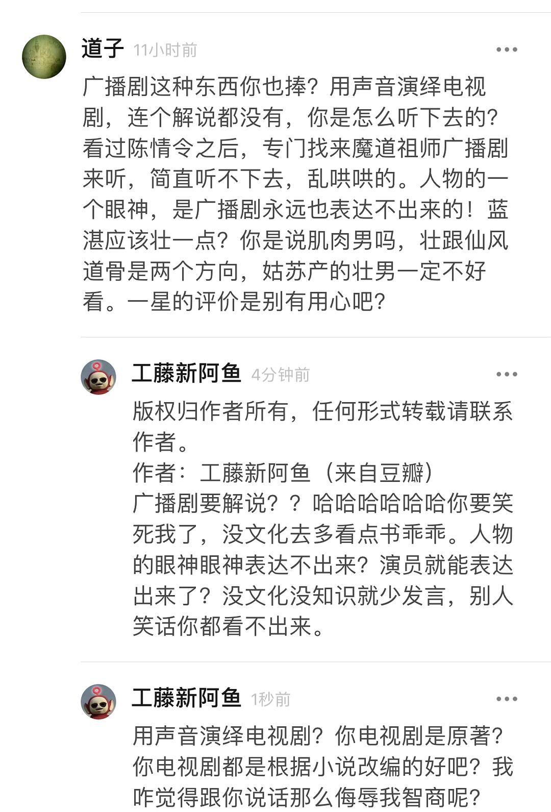 还有,像这种人骂了就拉黑不给人家反馈的的确挺烦的,怎么着?我能被你骂我还不能骂你?想骂你私信我,咱俩对骂,没反馈多无聊啊,你给我发影评什么的讨论剧情我觉得都行,不能你看了觉得好,别人觉得不好别人就是傻吧?你回复我什么态度我就回复你什么态度,再这样我就贴影评上呗,让更多人看到还有这种粉丝(摊手)粉丝败路人缘的事儿太多了。