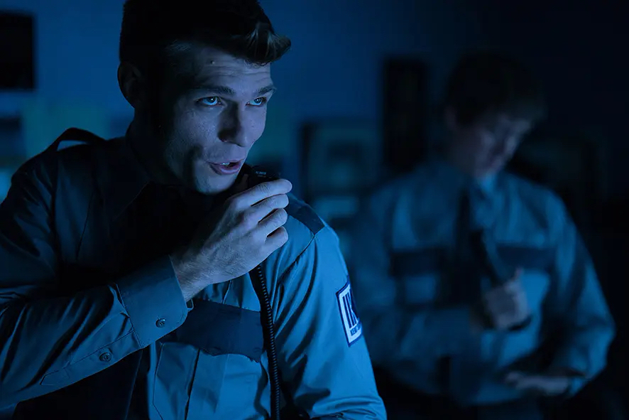 这边,艾迪Eddie驱车来到"里奇赛德商城RidgesideMall";商场夜班保安的队长是万斯Vance(连姆·麦肯泰尔Liam McIntyre 饰),队员有只想快点下班的梅森Mason(查德·林德伯格Chad Lindberg 饰)、喝完酒就躲着睡觉的露比Ruby(加布里埃拉·赖特Gabriella Wright 饰)、到处乱逛的华裔保安强尼Johnny Wei(汪东城Jiro Wang 饰)……