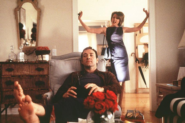 最著名的要数,萨姆门德斯拍摄的《美国美人》以及《革命之路》。笔者最钟爱的凯文斯派西在片中饰演了一个中产阶级白领男,却因为无聊的家庭生活,呆板无趣的工作而陷入精神危机,美艳女同学的出现,点亮了他灰暗的生活,成为他日日夜夜意淫的对象。电影不仅仅将镜头对准斯派西对女同学的意淫上,也将他妻子如何陷入成功学俗套,从而丧失自我的麻木状态给予精准的刻画,最后她忍不住跟崇拜的商人痛快上了一回床,才找到昔日激情。反观《情圣》,他只观照婚姻中丈夫的精神苦闷,却从不给出妻子的感受。这是令人非常惊诧的,婚姻的危机是双方都能感受到的。为什么我国这类中年危机的电影里,妻子角色都是被忽略的呢?《港囧》里的赵薇也是,居然对苦闷婚姻一点点反应都没有。这类妻子都只有一副面孔:照顾家庭的黄脸婆,要么就是以自己家产扶持丈夫的傻富婆(《港囧》)。